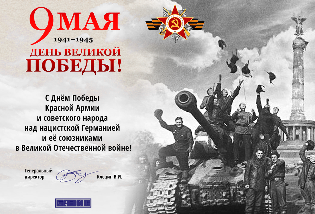 С Днём Победы Красной Армии и советского народа над нацистской Германией и её союзниками в Великой Отечественной войне 1941—1945 годов!